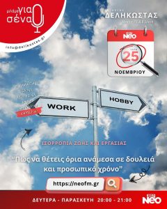 Η εκπομπή της Δευτέρας εισάγει τον ακροατή στη σύγχρονη έννοια της ισορροπίας ανάμεσα στη ζωή και την εργασία, μέσα σε ένα περιβάλλον υπερσύνδεσης, συνεχούς διαθεσιμότητας και ψυχικής υπερφόρτωσης.